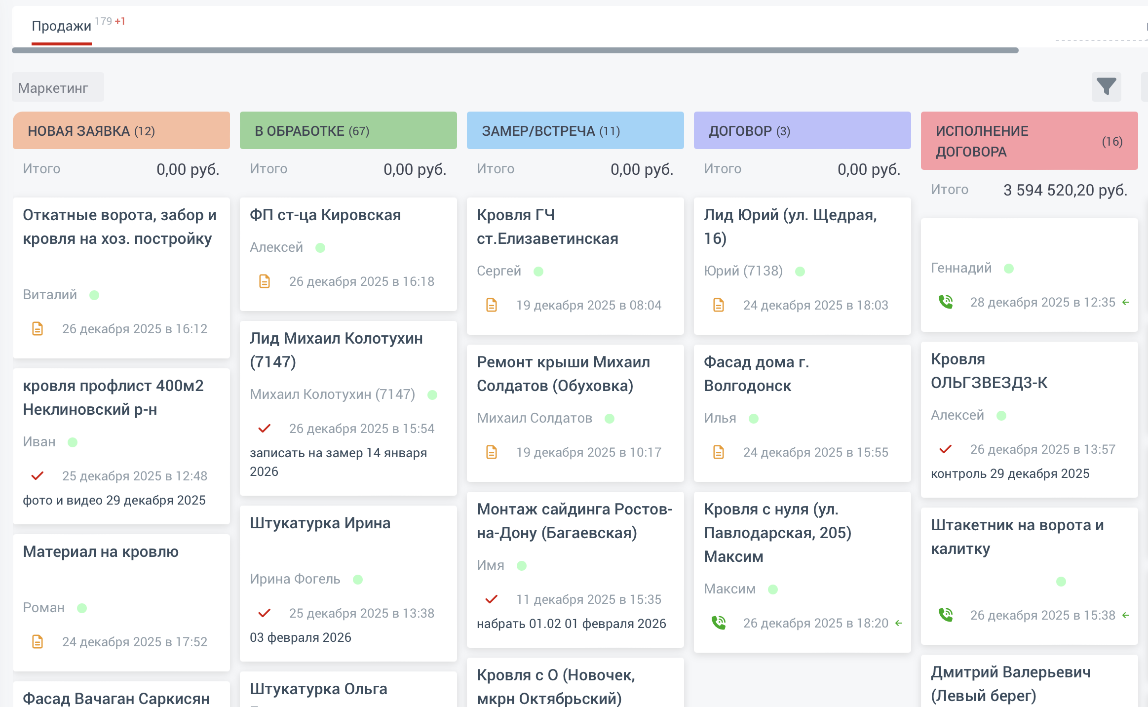 CRM обеспечивает четкий контроль над всеми этапами работ, от привлечения клиента до оплаты.