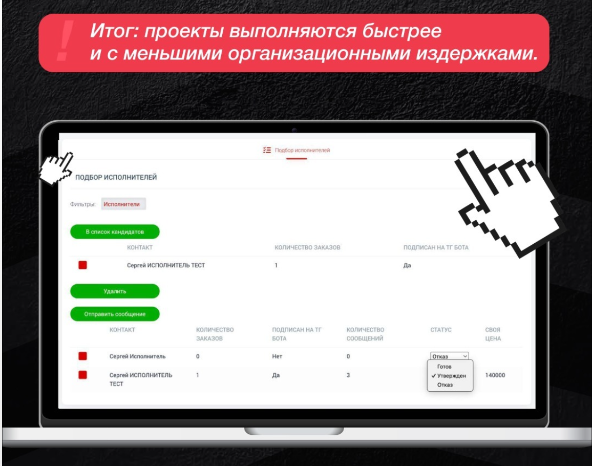 - Доступ к базе исполнителей